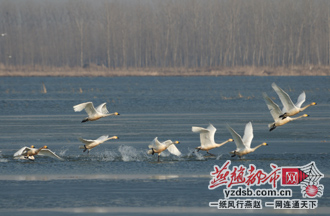 100多只大天鹅迁徙唐海湿地保护区(图)