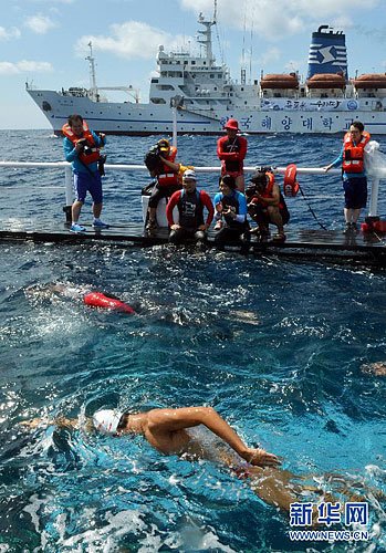 韩国歌手率队游向独岛 预计15日下午抵达登陆