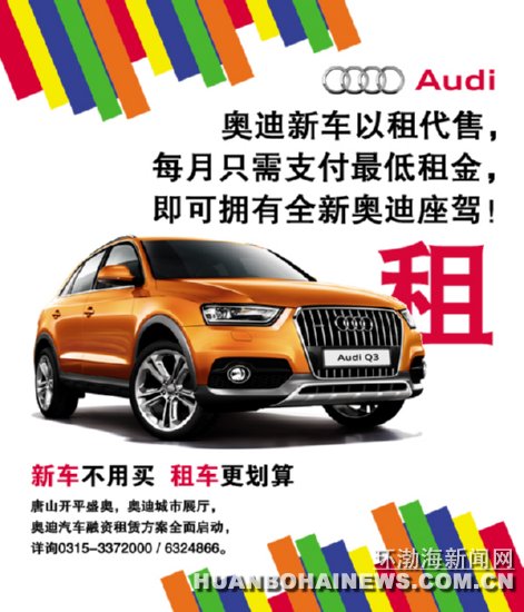 过新年,换新车,奥迪新车不用买,租车回家更划算。即日起,唐山开平盛奥,奥迪融资租赁业务全面开展,奥迪全系车型以租代售,仅需支付每月最低租金,即可拥有奥迪新车,手续简便优惠更多,缓解资金压力,任意车型随意挑选,保证完全一手新车,长期租赁更划算。做有车一“租”,将奥迪新车租回家!