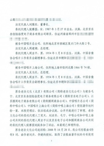 搜狐娱乐讯3月20日消息,去年,歌曲《传奇》(注:原唱者为李健)的版权所有者老孙文化(北京)有限公司把翻唱过这首歌的王菲和毛宁分别告上法庭,称两人有侵权行为。其中毛宁一案先有了判决,3月19日,北京市朝阳区人民法院驳回了原告的诉讼请求。原告老孙文化公司的代理人丁笑天对将继续上诉维权。而王菲官司仍在进行中。