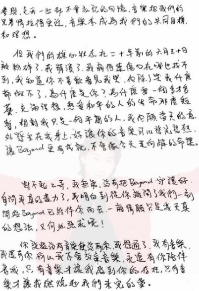 黄家强写信怀念黄家驹:对不起 没守护好Beyond