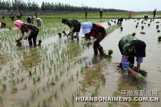 眼下正是曹妃甸农忙时节。日前,该区八农场机关干部及大学生村官顶着烈日,为尚庄子村残疾退伍军人张兆东的8亩多水田及时插上了秧苗。八农场场部每到农忙季节,都会组织党员和青年志愿者帮助缺少劳动力的困难家庭干农活儿,到今年已坚持了十六七个年头。图为党员和青年志愿者在水田里插秧。