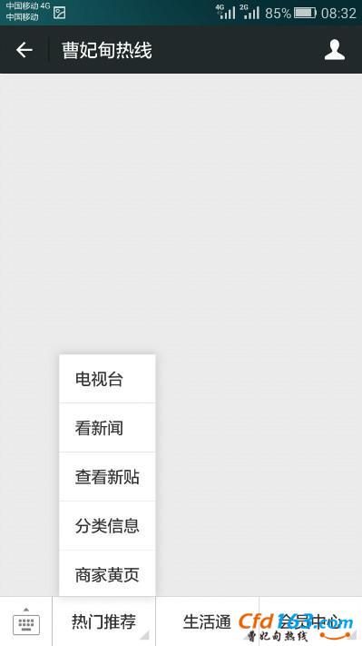 曹妃甸热线公众平台(cfdrxw),是曹妃甸热线网的推出的公众号,他基本上提供了网站的自助功能,信息与网站同步,随时在微信上查询发布最新的房产,人才,二手,交友等分类信息,提供本地新闻及黄页、影讯、公交等便生活。